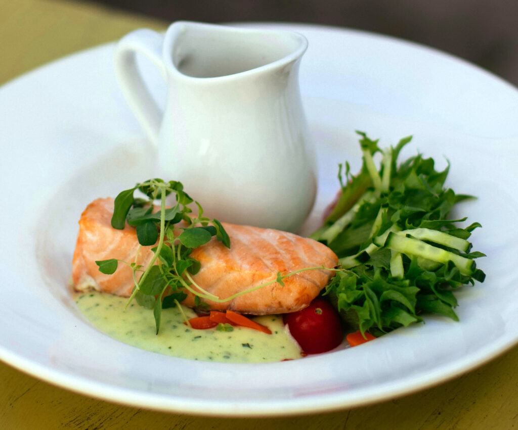 Dans les pays nordiques, le saumon fumĂ© est souvent accompagnĂ© dâune sauce Ă base de crĂšme fraĂźche, aneth et un filet de jus de citron. Cette sauce douce et lĂ©gĂšrement relevĂ©e met en valeur le goĂ»t dĂ©licat du saumon fumĂ©.