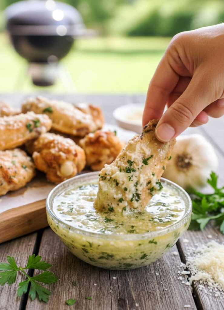 Moins piquante mais tout aussi addictive, cette sauce mise sur la gourmandise : beurre fondu, ail doré, parmesan fraîchement râpé et herbes italiennes. Elle est devenue un classique des wings américaines, notamment dans les restaurants spécialisés et sur TikTok où les recettes « air fryer wings » explosent.