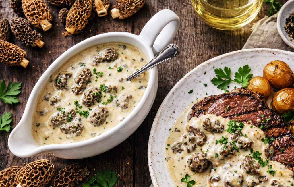 La sauce aux morilles, c’est la touche chic et réconfortante par excellence dans la gastronomie ! Ce délice crémeux met en vedette les morilles, ces champignons sauvages au goût intense et boisé. Originaire des traditions culinaires françaises, cette sauce allie finesse et caractère, grâce à une base onctueuse souvent enrichie de crème et de jus de viande. En plus d’être un régal pour les papilles, elle apporte une sophistication instantanée à vos assiettes.