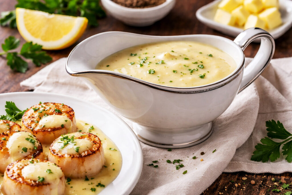 Une sauce classique française entre velouté et beurre blanc