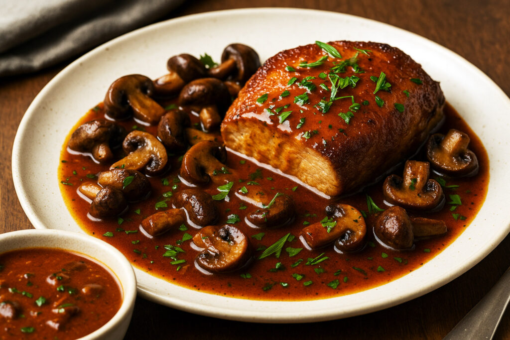 La sauce Chasseur est un grand classique de la cuisine française, idéale pour accompagner des viandes sautées ou rôties, en particulier le poulet, le veau ou encore les côtelettes de porc. Élaborée à partir des sucs de cuisson, elle allie la profondeur d’un fond brun lié, la douceur des champignons et des échalotes, la chaleur du cognac et la fraîcheur des herbes fines. Cette sauce onctueuse, légèrement tomatée, est parfaite pour sublimer un plat simple et lui donner des airs de bistrot chic.