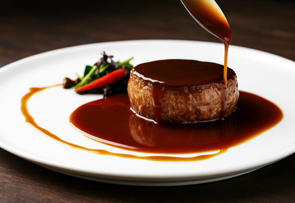 La demi-glace est une grande sauce mère de la cuisine française, née au XIXe siècle dans la lignée d’Escoffier. Plus souple que la glace de viande, elle combine un fond brun et une sauce espagnole, réduits de moitié, d’où son nom. C’est une base riche, onctueuse et nappante, qui sert de point de départ à de nombreuses sauces brunes : poivre vert, madère, chasseur, périgueux…