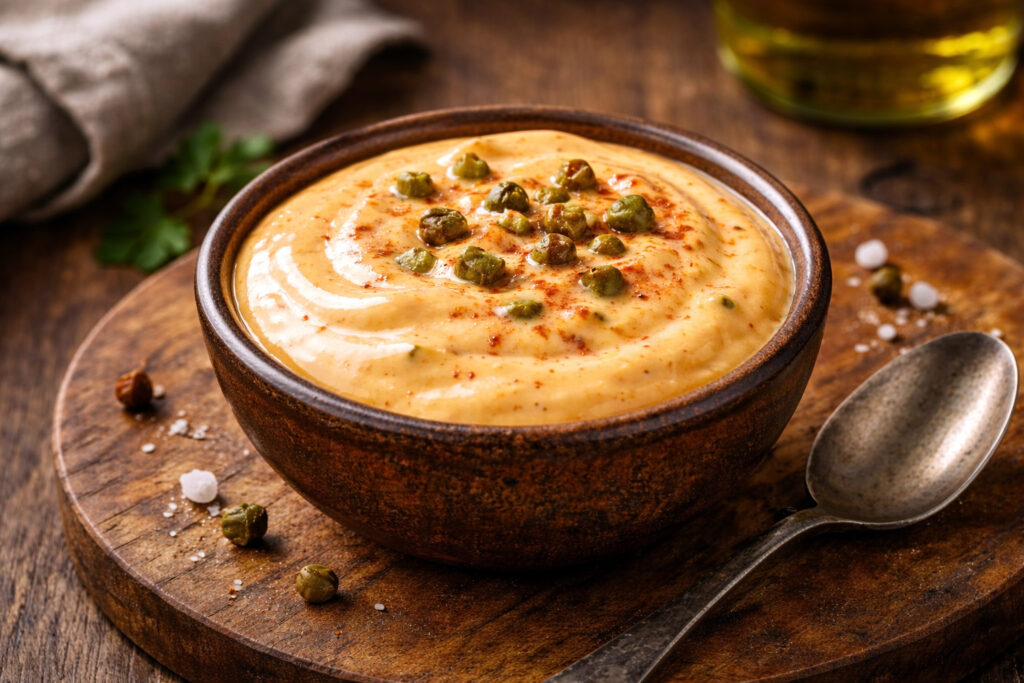La sauce paprika est crémeuse, légèrement épicée et parfumée. Le paprika apporte une note douce et chaleureuse, tandis que les câpres et le piment donnent plus de relief.