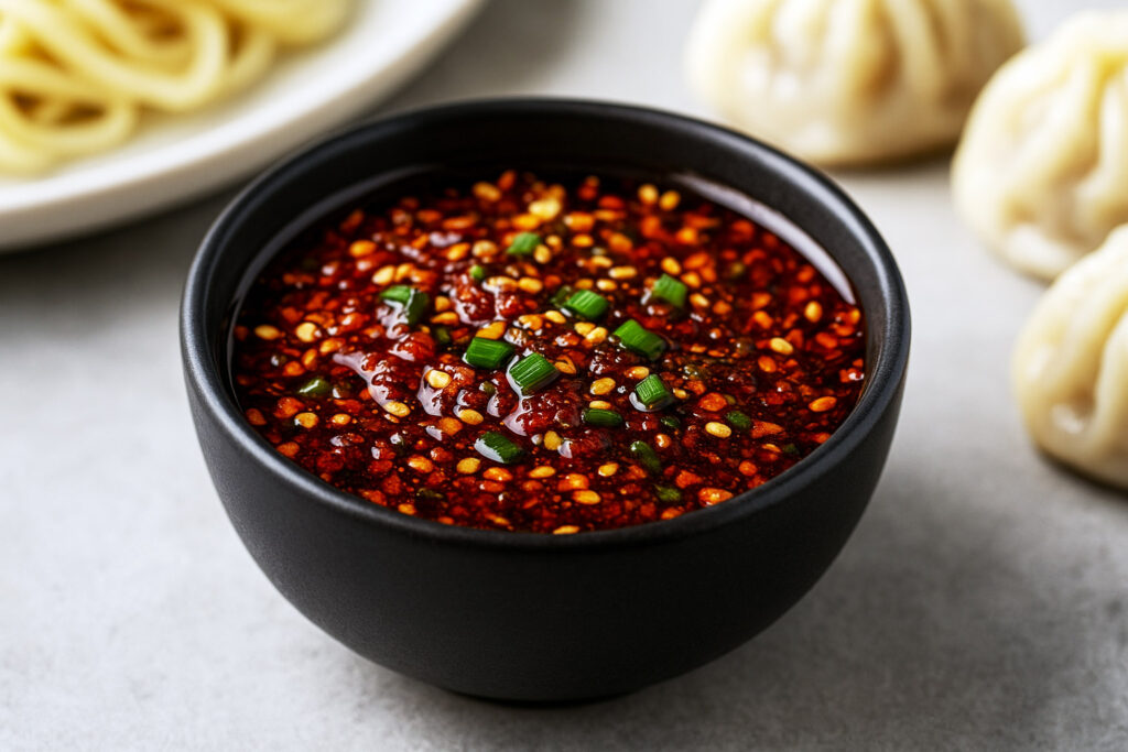 ✅ Version simplifiée : utiliser uniquement huile neutre + flocons de piment + ail + sauce soja + un peu de vinaigre ; omettre gingembre ou sauce huître si introuvables.