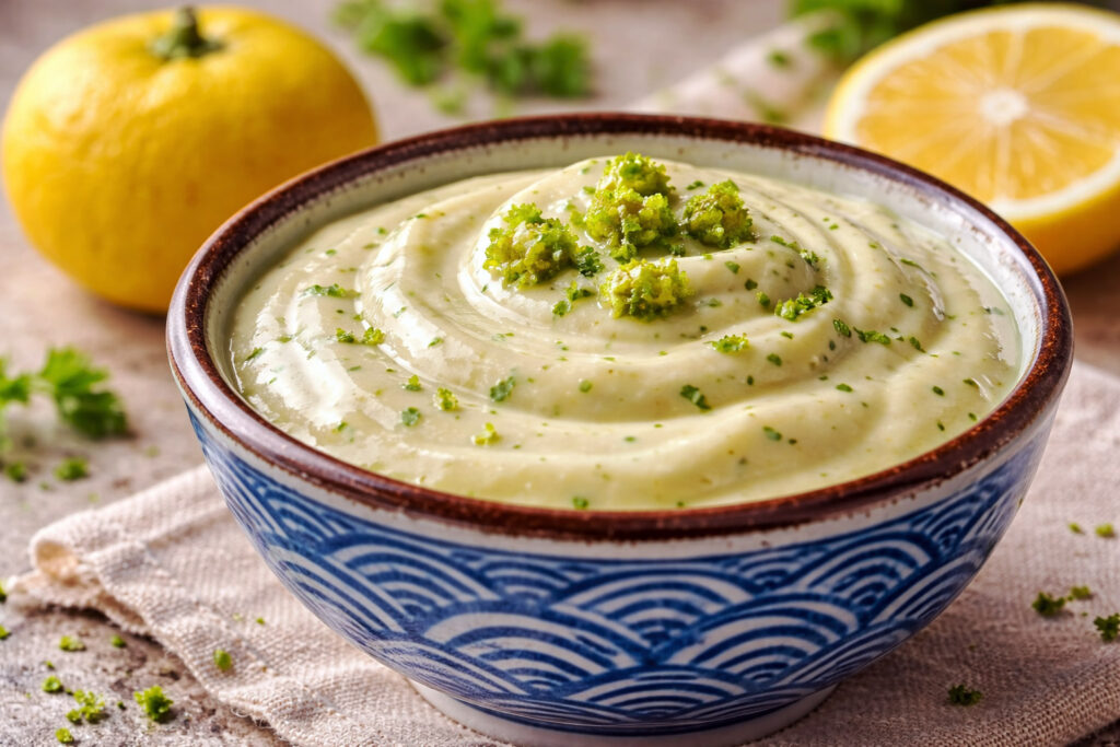 La Yuzu Kosho Mayo est une sauce moderne inspirée de la cuisine japonaise, qui combine la douceur d’une mayonnaise avec le caractère explosif du yuzu kosho, un condiment traditionnel japonais à base de piment, de zeste de yuzu et de sel. Très utilisée dans les restaurants fusion et les cuisines contemporaines, cette sauce offre un équilibre unique entre acidité, piquant et fraîcheur citronnée. Parfaite en accompagnement de poissons, de fruits de mer ou de plats frits, elle apporte une touche originale et raffinée à vos recettes du quotidien.